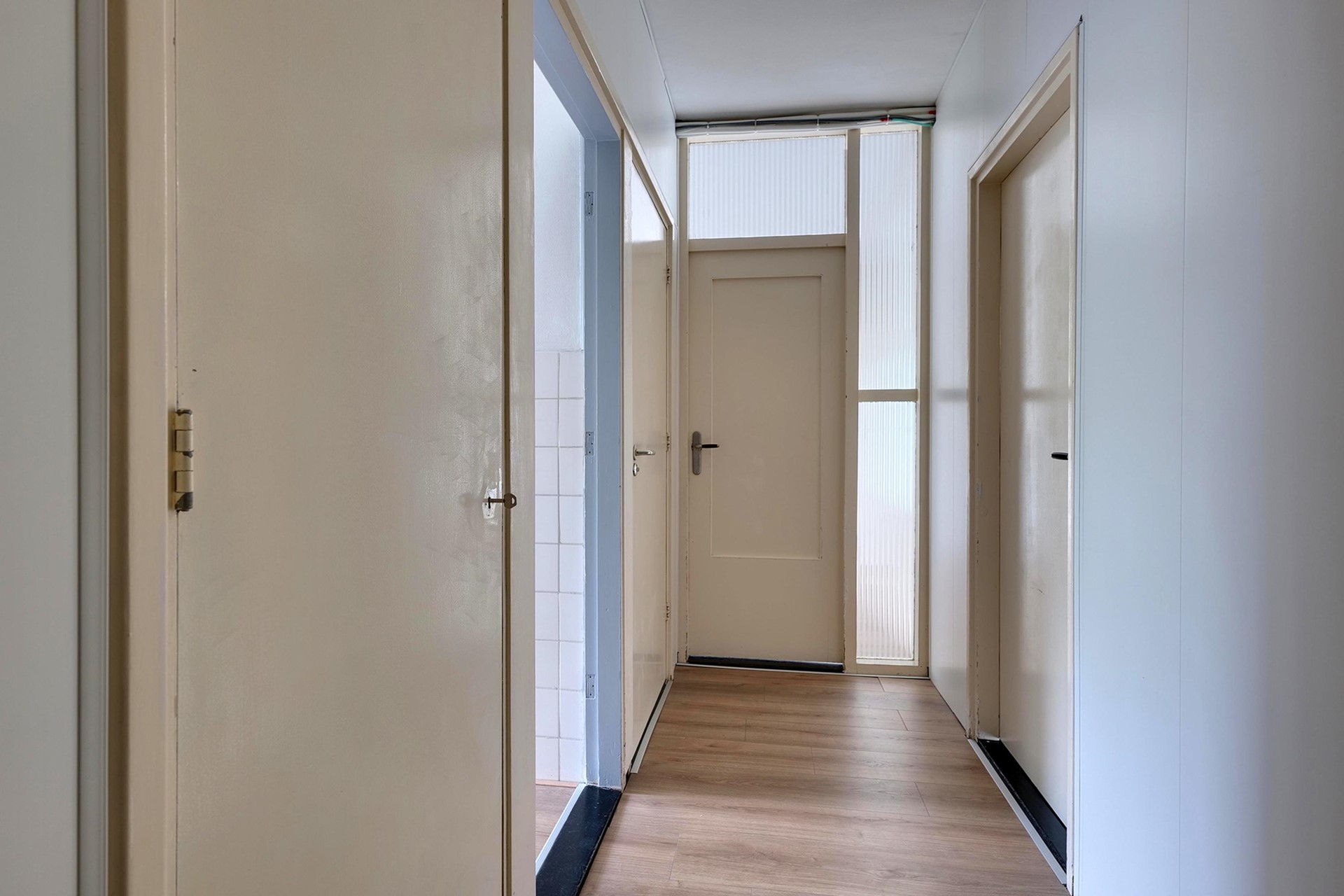 Centrale entree: brievenbussen, trapopgang en toegang tot de bergingen.