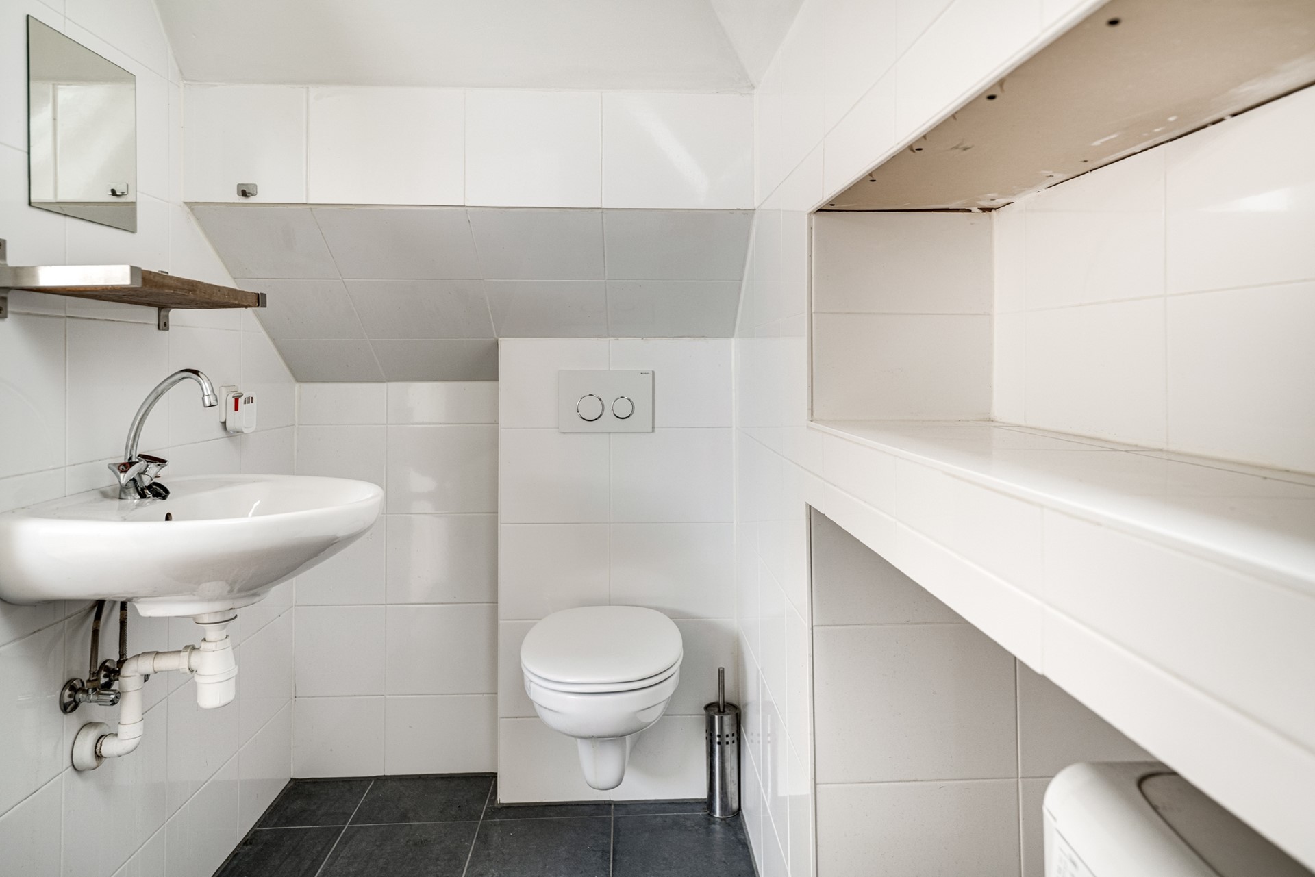 Eén van de badkamers is vernieuwd rond 2015. Een tweede badkamer op de lagere woonlaag is ouder en kan naar wens gemoderniseerd worden.